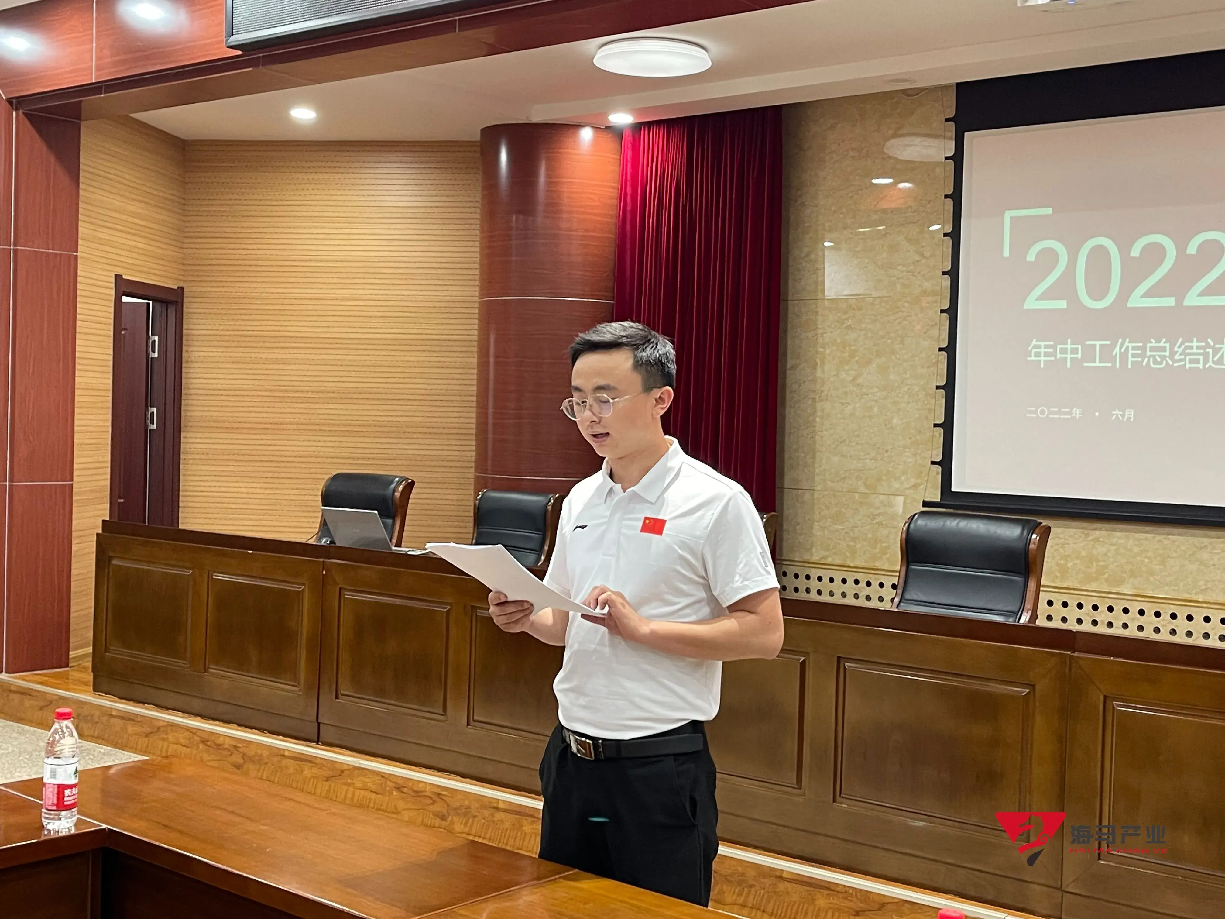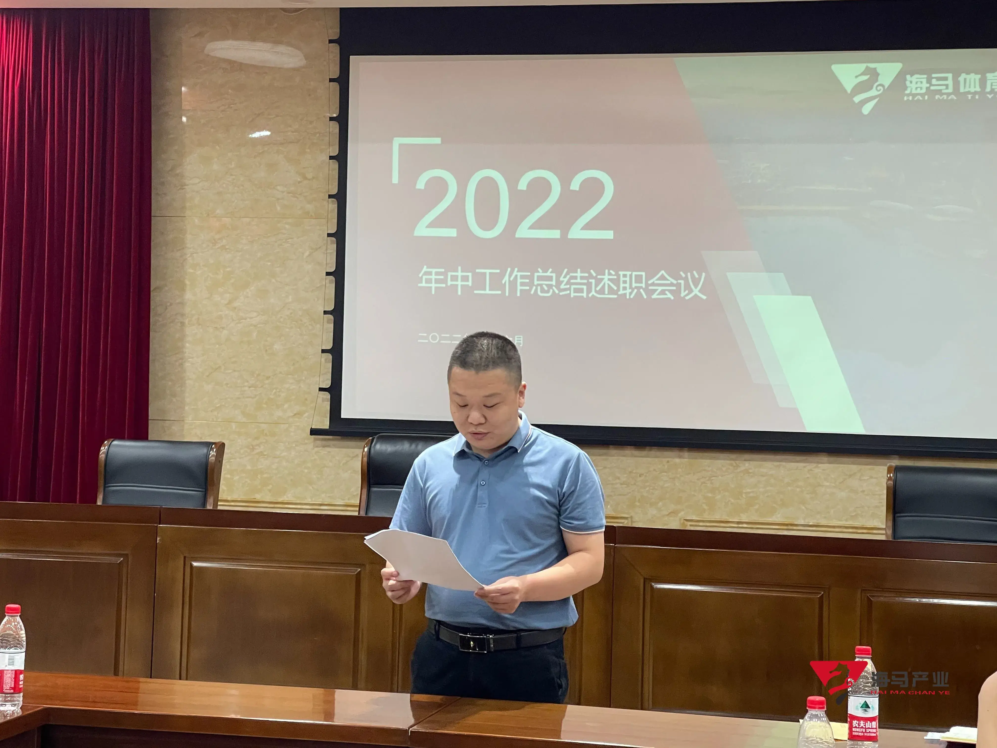 2022年6月29日下午,球速体育文化产业集团在山东省体育中心二楼会议室召开年中工作总结述职会议,会议对上半年工作成果进行了总结汇报,并就下半年重点工作进行部署。总经理王海民出席了本次会议。会议由综合管理部负责人王永健主持。